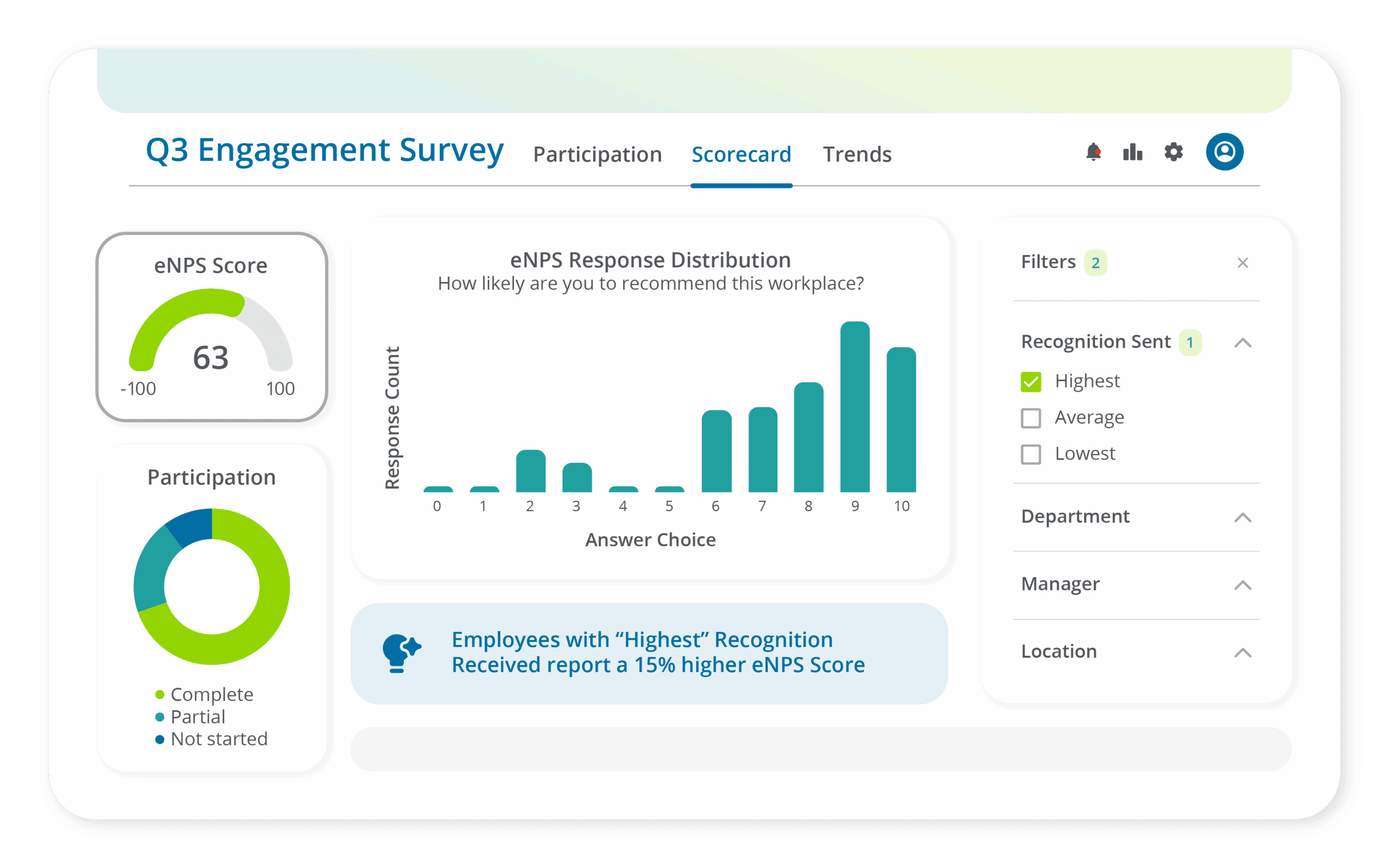 Reach every employee with our mobile-first interface that ensures frontline and remote workers feel just as valued as office staff—driving participation rates up to 83% across all employee segments.