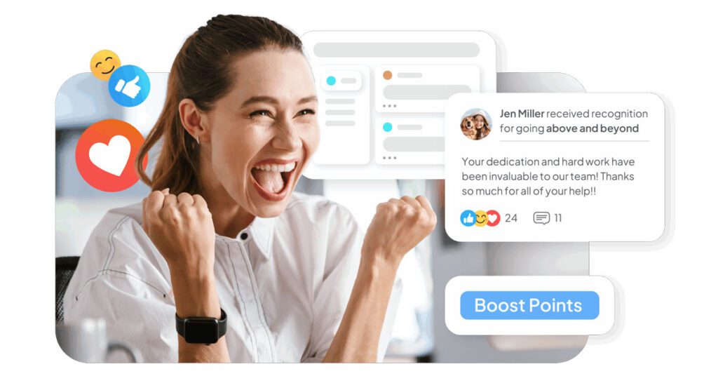 Employees can recognize peers in real time when they collaborate well, solve problems, support teammates, deliver strong customer experiences, or demonstrate company values in their day-to-day work.