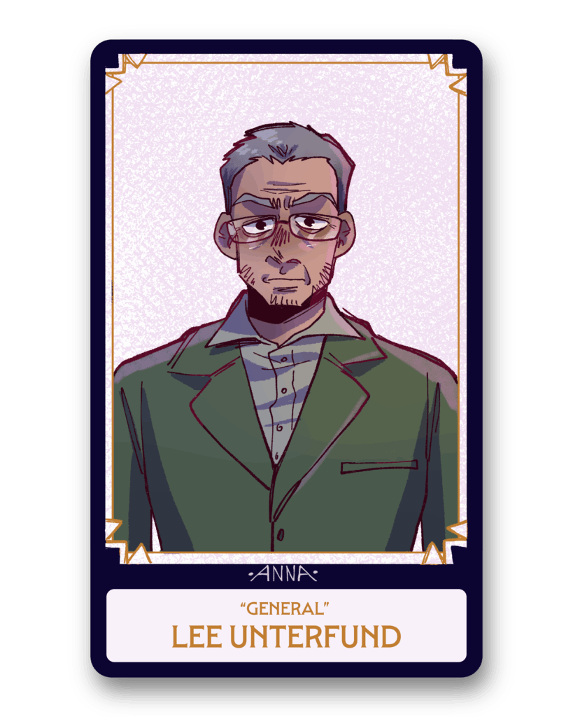 After an illustrious military career, “General” Lee Unterfund became a self-described expert in logistics and outfitting. The General will talk at length about the necessity of getting people the equipment and structure they need to carry out their goals, or “orders” as he’s prone to calling them. But Lee tends to provide his teams with the kind of resources he’s used to needing, not the tools they actually need.