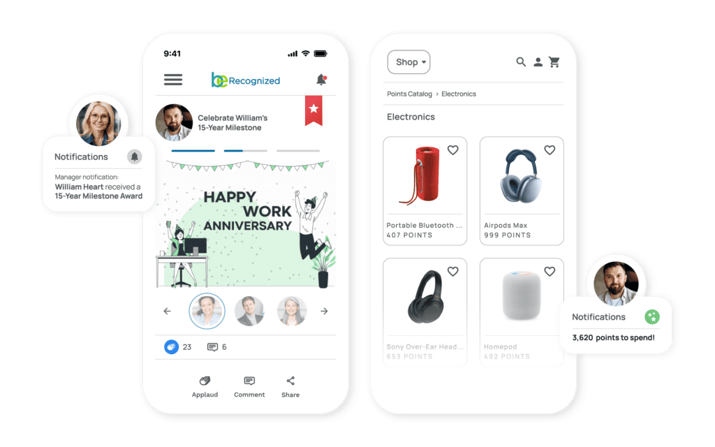 And don’t forget about milestone and service awards. Many businesses opt for a points-based recognition program to give employees the flexibility to choose their own rewards, reducing administrative overhead and creating a personalized recognition experience.